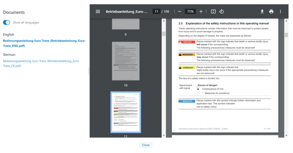 Dank Filterfunktionen und Volltextsuche finden Nutzer schnell die gewünschten Informationen – egal, ob es sich um Bauteile, Baugruppen oder Pläne handelt.
